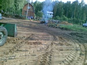 Участок крайний (за ним сразу лес, с тыльной стороны еще около 2 соток земли). Электрический столб (по границе). На участке 4 кольца для колодца. Соседи построились давно.