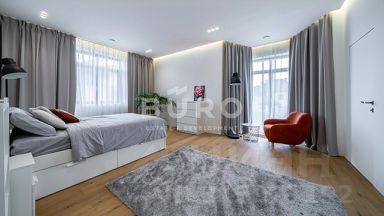 Превосходный загородный дом возведен по современным технологиям в соответствии с высокими стандартами качества. Монолитно-кирпичная конструкция делает дом прочным и долговечным. В доме выполнена отделка с применением материалов от ведущих мировых производителей. Современный интерьер укомплектован стильной мебелью и предметами декора. Широкая винтовая лестница гармонично дополняет убранство дома.