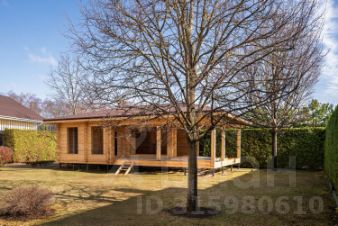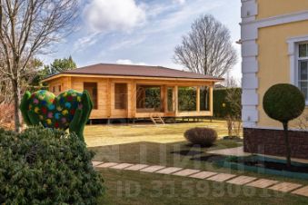 Установлена отдельно стоящая одноэтажная современная баня из кедра (72 кв.м), полная готовность июнь 2025 г. Баня очень гармонично расположена относительно других строений на участке, сохраняя живописный вид из их окон.