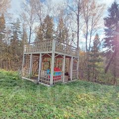На участке есть все необходимое для проживания, электричество 9кВт, газ по границе участка, канализация, колодец, баня, беседка, двухэтажный дом из бруса на высоком подполье 84кв.м..
