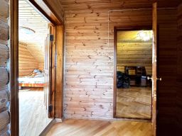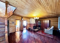 Вашему вниманию предлагается участок 19 соток с жилым домом из оцилиндрованного севереного бруса 132 квадратных метра, баней, также из бруса, 32 квадратных метра, гаражом, парковочными местами с навесом и сараем.