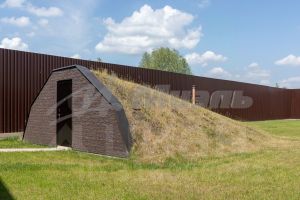На участке 34 сотки дополнительно располагаются: навес для машины, зона барбекю, беседка, винный погреб, банный комплекс.