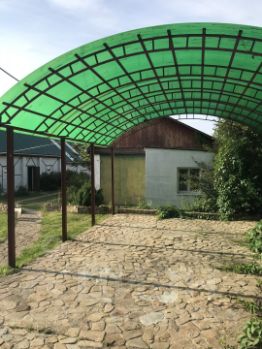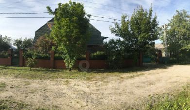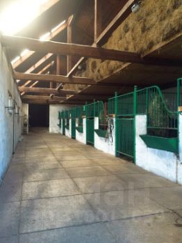Дом стоит в центре деревни на второй линии и граничит с сельскохозяйственными полями. Участок площадью 23 сотки (ИЖС) огорожен забором. На участке построены две конюшни, площадью 200 м2 каждая, вольер для животных, бытовка, 3 хозпостройки. Есть зона мангала и 2 парковочных места с навесом и с заездом через центральные ворота.