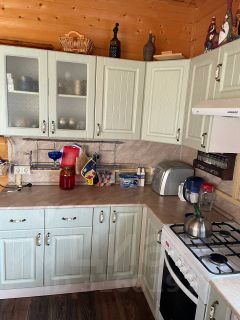 Первый этаж: прихожая, техническая комната, просторная кухня-гостиная (огромный диван, обеденный стол до 6 человек, посудомоечная машина, холодильник, телевизор-триколор, газовая плита (баллонный), сан. узел с душевой кабиной, гостевая комната.