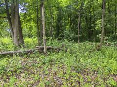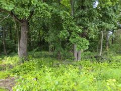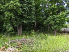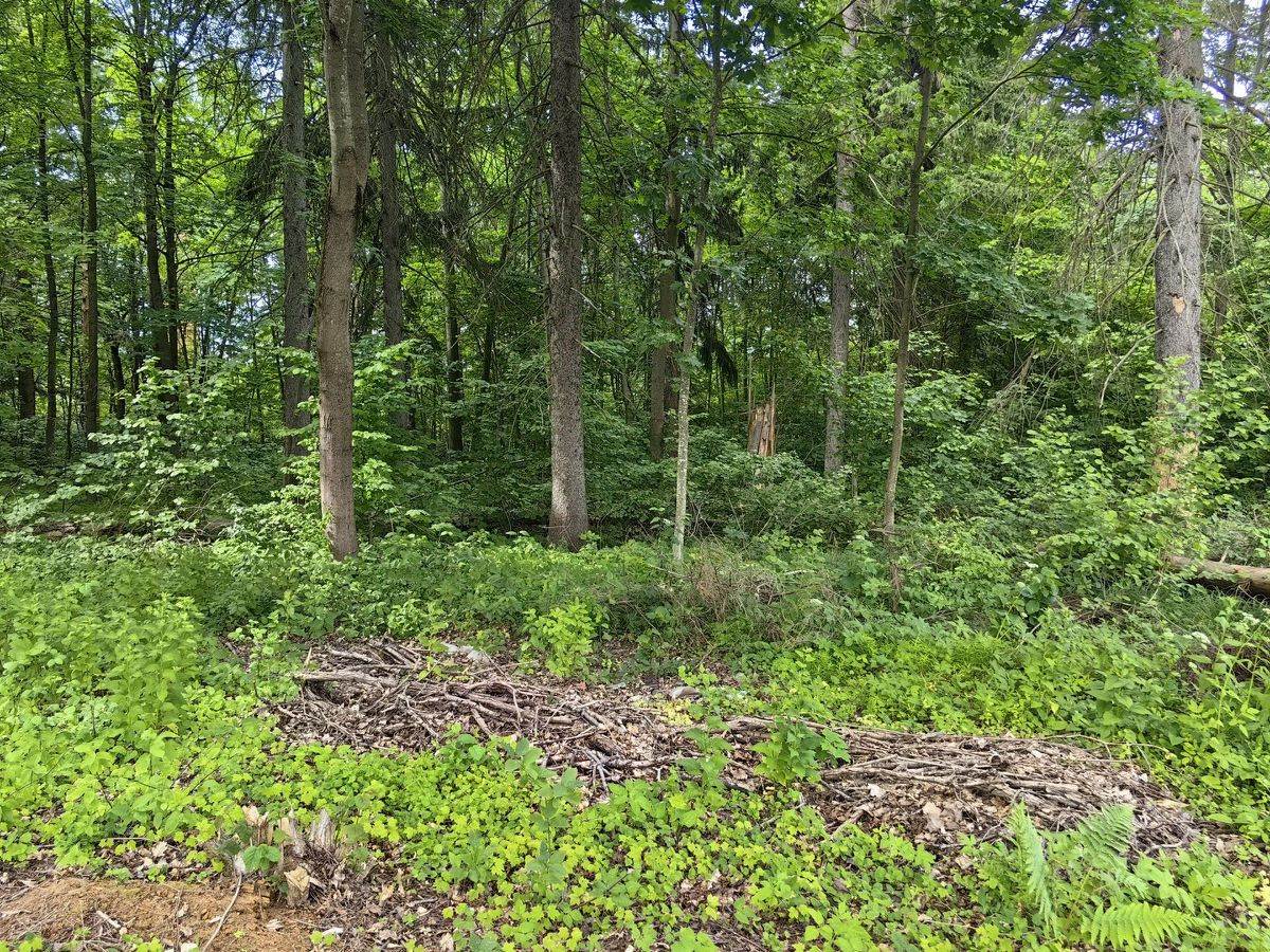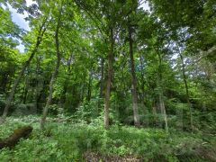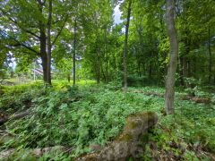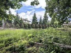 УЧАСТОК: площадью 18 соток, правильной прямоугольной формы (примерно 2575 метров) с природным лесным рельефом, украшенная деревьями, такими как ели, дубы.