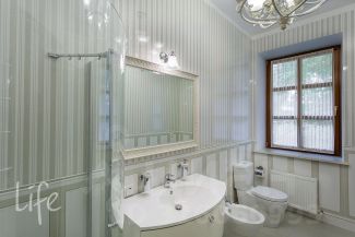 Незаурядный лесной участок на берегу живописного пруда. Ландшафтный дизайн, партерный газон, дорожки с ночным освещением, парковка для автомобилей. На территории помимо основного дома 726 м2, находится гостевой (или для персонала) дом площадью 141,3 м2, с гаражом на два автомобиля, мастерской, помещение водоподготовки, котельной с генератором. Снаружи расположена терраса с мангальной зоной. Участок непосредственно примыкает к большому пруду с зонами отдыха, пляжем, свой выход к воде.
