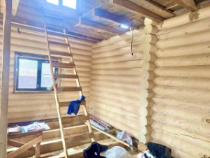 Проведена премиум обработка каждого бревна пескоструем и окраска для придания рельефного рисунка древесины.