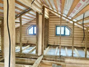 Черновой пол уже сделан, половые лаги предусматривают утеплитель на 200 мм