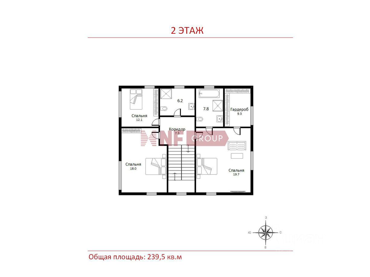 Мастер спальня с су и гардеробной 36,87 м2, спальня 18 м2, спальня 12 м2, су 6,2 м2, коридор 7,3 м2