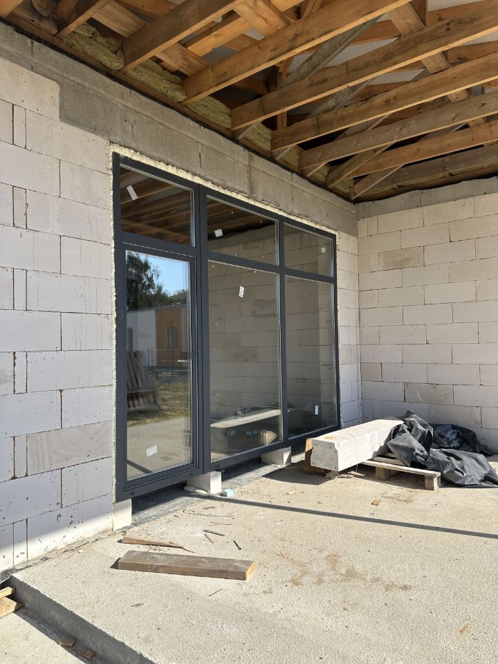 Комплектация "Теплый контур" включает все основные элементы дома: фундамент, кровлю, стены и несущие перегородки, окна Rehau и двери, утепление кровли и стен.