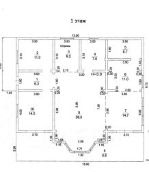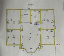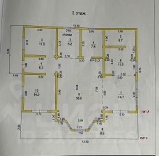 Планировка: 1 этаж - гардеробная, кабинет, зал, кухня, санузел, чулан без обогрева под фрукты и овощи, консервы и другое хранение. Выход из кухни и кабинета на террасу через оконные двери.