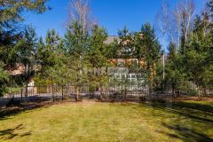 Лесной участок с горизонтальным ландшафтом: более 100 лесных взрослых (до 12-ти м высотой) и молодых деревьев (сосны около 60-ти штук, 32 ели, 24 березы, туи), газон, есть вымощенная брусчаткой площадка для 2-х а/м. По периметру участка вдоль улицы и справа высажены сосны.