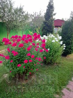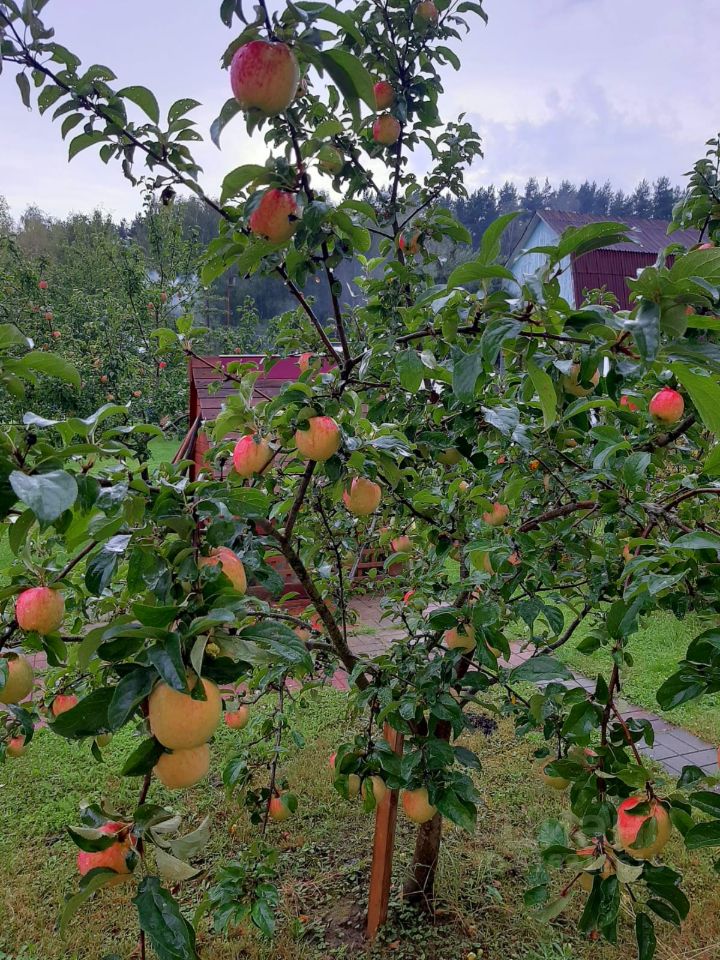 На участке высажено много плодовых деревьев, кустарников и цветов.