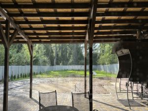 -Дорога до участка асфальт, установлены шлагбаумы, СНТ освещается, возможна прописка. Дом достроен и отремонтирован в середине 2024 года. В доме никто не проживает.