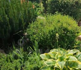 Участок 12 соток имеет прямоугольную форму, ровный, сухой, с продуманной планировкой, огорожен высоким забором по периметру. Земельный участок имеет дорожки из натурального камня, ухоженные клумбы, грядки, парник, озеленение.