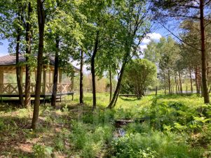 - новая деревянная беседка (7х15) с мягким остеклением,