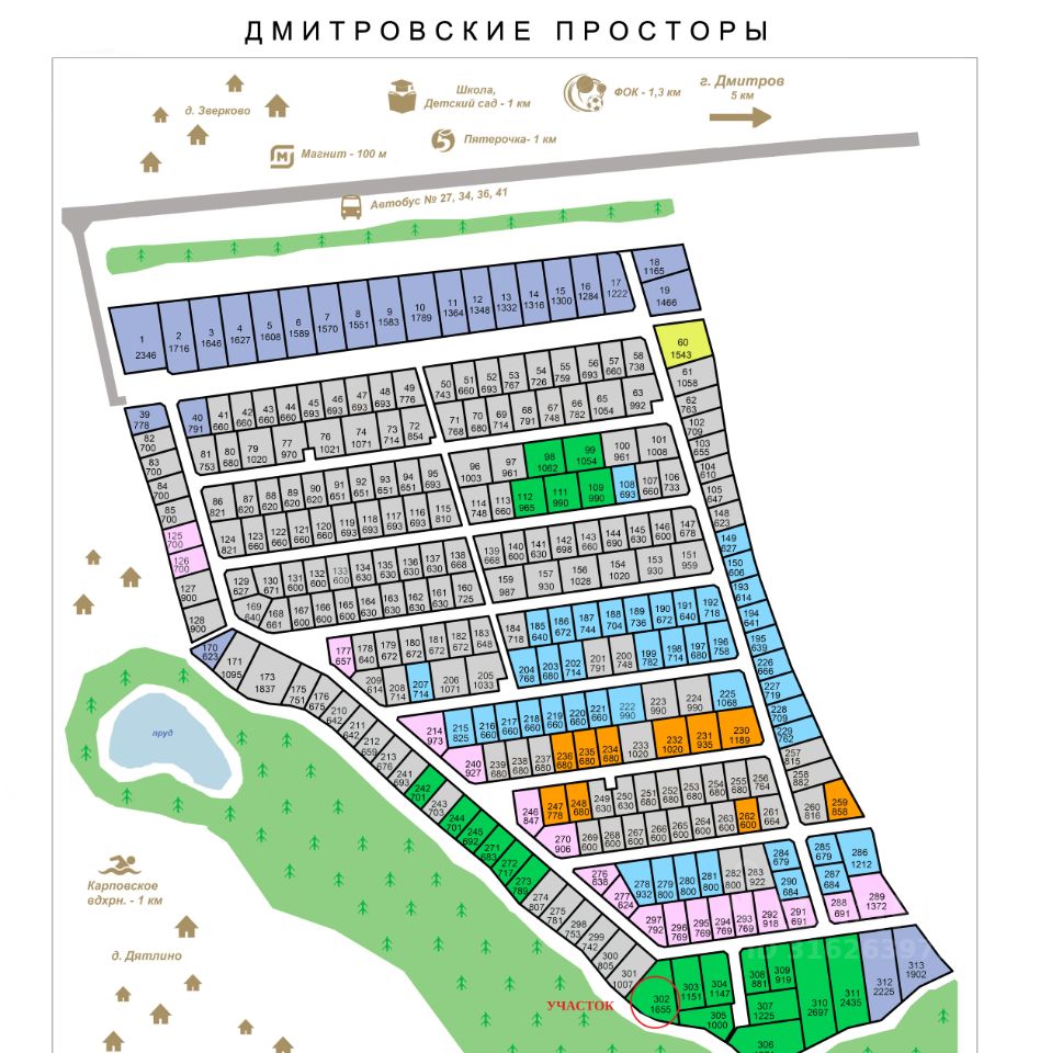 Продается шикарный участок 16,5 соток (по факту больше 18 соток) в живописном месте. Два соседа, дальняя граница участка упирается в овраг с вековыми дубами. Участок находится в Дмитровском районе недалеко от деревни Дятлино (регистрационный адрес деревня Зверково). Участок неправильной формы (трапеция) широкой стороной к оврагу, выровнен, земля вспашена в прошлом году. Дорога отсыпана асфальтовой отработкой. При въезде на участок уложена ливневая труба. Свет подведен, вода скважина, септик. Залита фундаментная плита 9*9 м. В пешей доступности красивейший водоем для отдыха и рыбалки Карповское водохранилище. Также рядом находится конюшня, где можно отдохнуть в верховой прогулке или научиться держаться в седле. Рядом (5 минут на автотранспорте и в сторону поселка Ново-Синьково, и в сторону поселка Горшково) находятся школы, детские сады, поликлиника, амбулатория, сетевые магазины, рынки. До города Дмитров 15 минут на транспорте. На участке находится отличная бытовка и сарай. Прекрасная возможность начать строительство в чудесном месте.