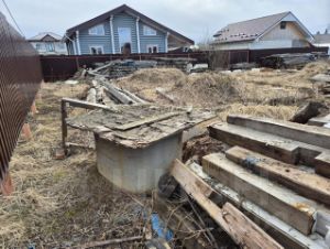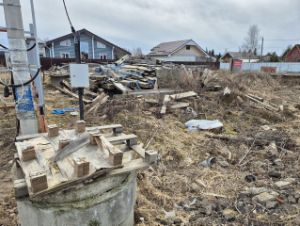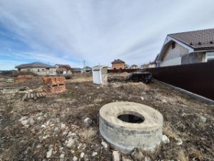 Участок подключен к электросети, есть газ (возможно подключение) и канализация на территории КП. Территория под охраной, проезд через шлагбаум. На самом участке имеется колодец с насосом и канализация. Заготовлен кирпич с арматурой под строительство забора, если что-то не нужно - вывезем.