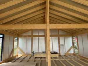 Oпорно балoчнaя система выполнена из клееного бруса еловых пород древесины высшего класса.