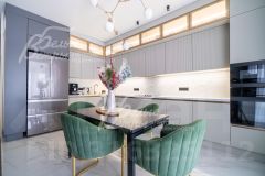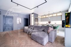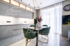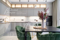 Мебель, оборудование: новый кухонный гарнитур с фурнитурой и доводчиками Blum и новой встроенной бытовой техникой (варочная панель Samsung, духовой шкаф Samsung, СВЧ, посудомоечная машина 60 см Gorenje, двухдверный холодильник Haier). В санузлах - современная качественная сантехника от ведущих производителей, отдельно стоящая ванна из искусственного камня, смесители с терморегулятором GROHE.