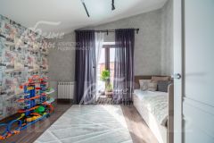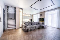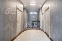 Описание внутренней отделки: выполнена внутренняя отделка в современном стиле с использованием дорогостоящих материалов. Стены покрашены, поклеены обои, украшения стен - декоративная штукатурка. Полы отделаны плиткой (на первом этаже тёплые полы, на втором этаже тёплые полы в зонах, покрытых плиткой). На потолках размещена стильная система освещения с аксессуарами. Установлены дорогостоящие двери PROFIL DOORS (серый цвет, черная фурнитура), электрика черного цвета, радиаторы. На второй этаж ведет монолитная лестница со ступенями, отделанными ясенем.