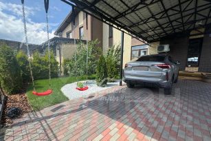 Благоустройство участка: засеян газон, высажены кустарники и деревья: 15 больших можжевельников, 15 больших туй смарагд, 20 туй брабант, яблони, груша, дорожки выложены брусчаткой, есть навес для машины: парковочное место выложено брусчаткой на бетонной основе.
