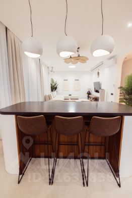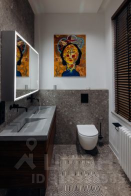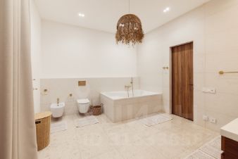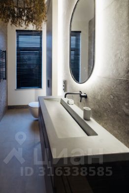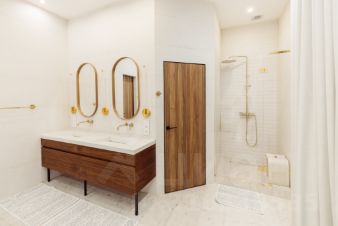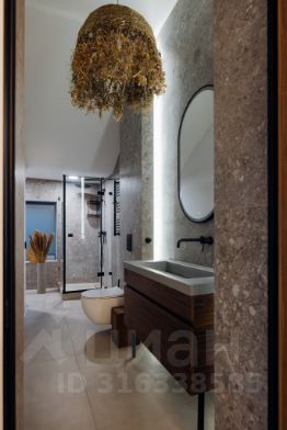 - 4 санузла с шикарными отделочными материалами и мебелью. Раковины все из бетона на заказ, тумбы - шпон ореха. Все санузлы с душевыми.