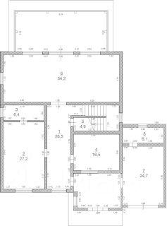 1 этаж: прихожая, мастер-спальня со своим санузлом, комната свободного назначения, гостевой санузел, кухня-гостиная, веранда.