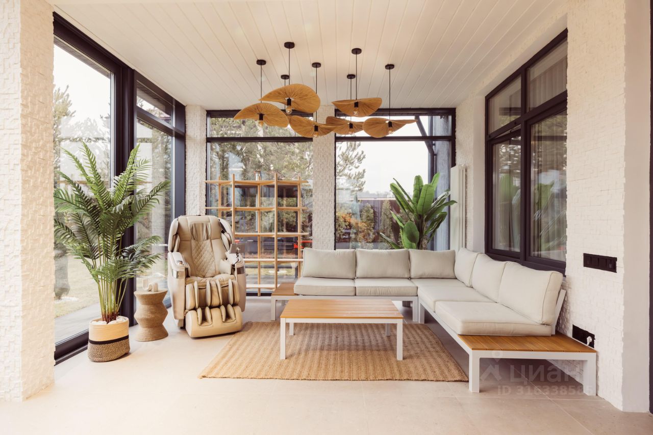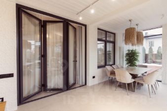 Вся мебель в доме сделана на заказ. Есть домашний кинотеатр. По дому проведены теплые полы. Большая остекленная веранда с качественными панорамными окнами для круглогодичного пребывания. Гараж используется под спортзал (возможно использование под автомобиль). Дом и участок полностью оснащены системой видеонаблюдения. Интернет в дом проведен через оптоволокно. В доме стоит единая мэш система, которая покрывает всю площадь дома и интернет работает бесперебойно в любой точке.