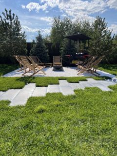 - Зона отдыха с шезлонгами и очагом.