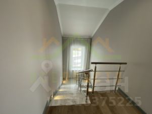 Между этажами красивая современная лестница с металическими перилами ,дубовыми поручнями и подсветкой.