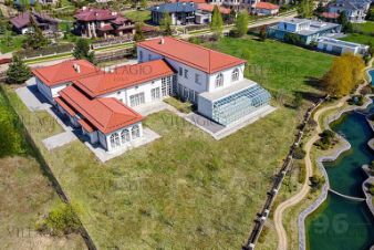 Отдельно стоящий комплекс: двухэтажное строение площадью 180 кв.м., включающее вместительный трёхместный гараж и помещения второго этажа, предназначенные для размещения обслуживающего персонала.