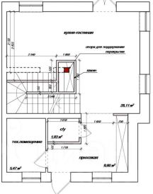 1 этаж - кухня-гостиная с камином, терраса, прихожая, бойлерная, сан узел
