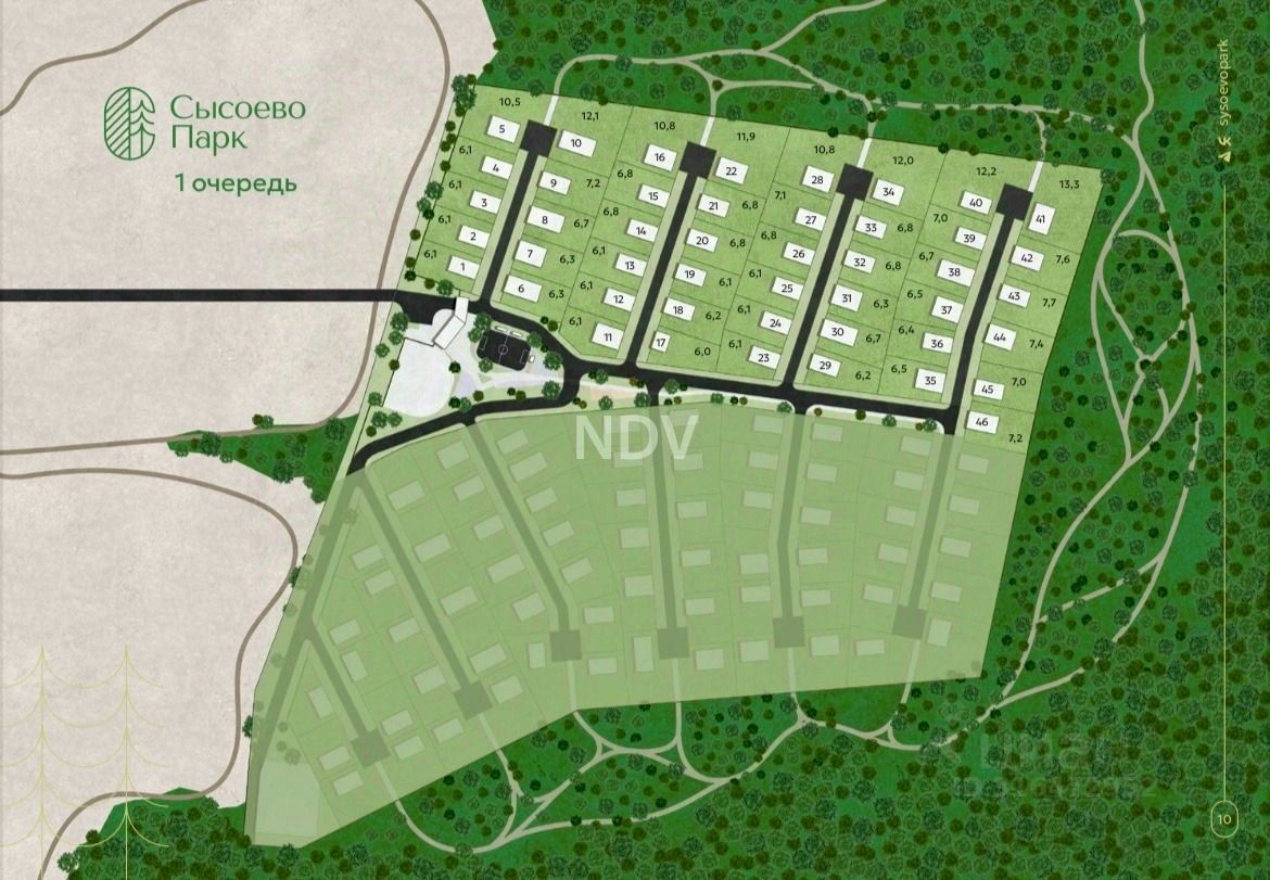 Первая очередь на 2025, 46 домов / строительство второй и третьей очереди не будет мешать проживанию в посёлке (въезд техники будет в другом месте и территория первой очереди будет огрожденна высоким забором).