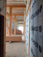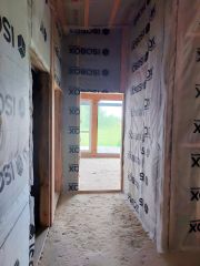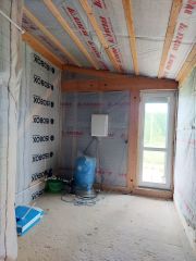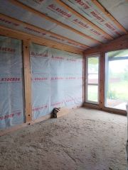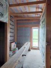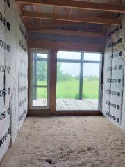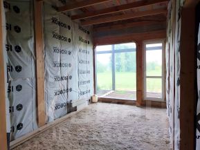 Отделка: сделан теплый контур дома, сделана разбивка по помещениям, сделана подготовка под чистовую отделку стен, потолков и полов. Высота потолков от 2,7 м до 4 м в гостиной зоне и зоне кухни и прихожей. Внутри дома чувствуется воздушность и объем.