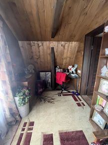 В доме есть электричество и тёплый пол, водопровод летний, 3 спальни на втором этаже, санузел и кухня-гостиная на 1 этаже.