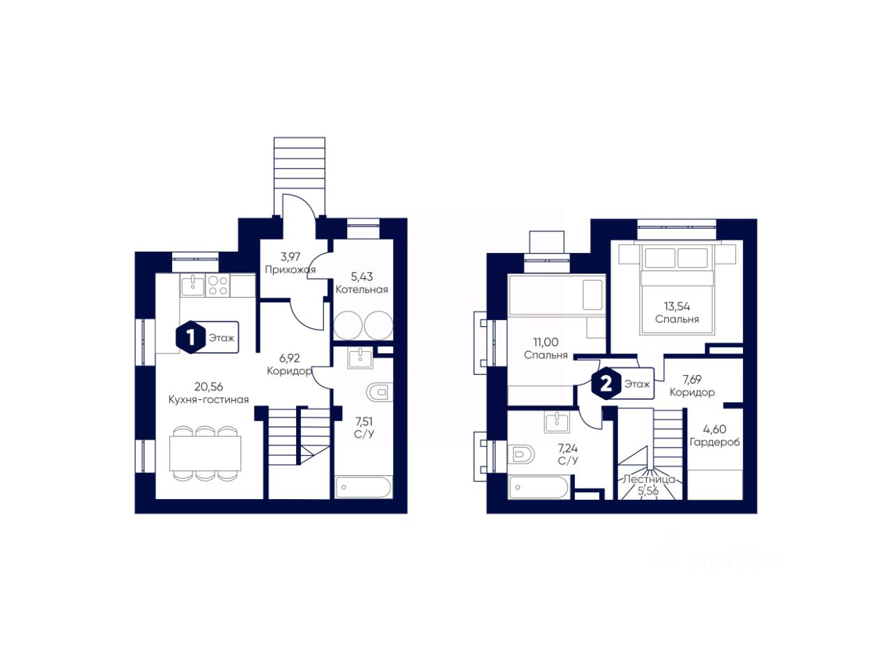 - 2 туалетных комнаты