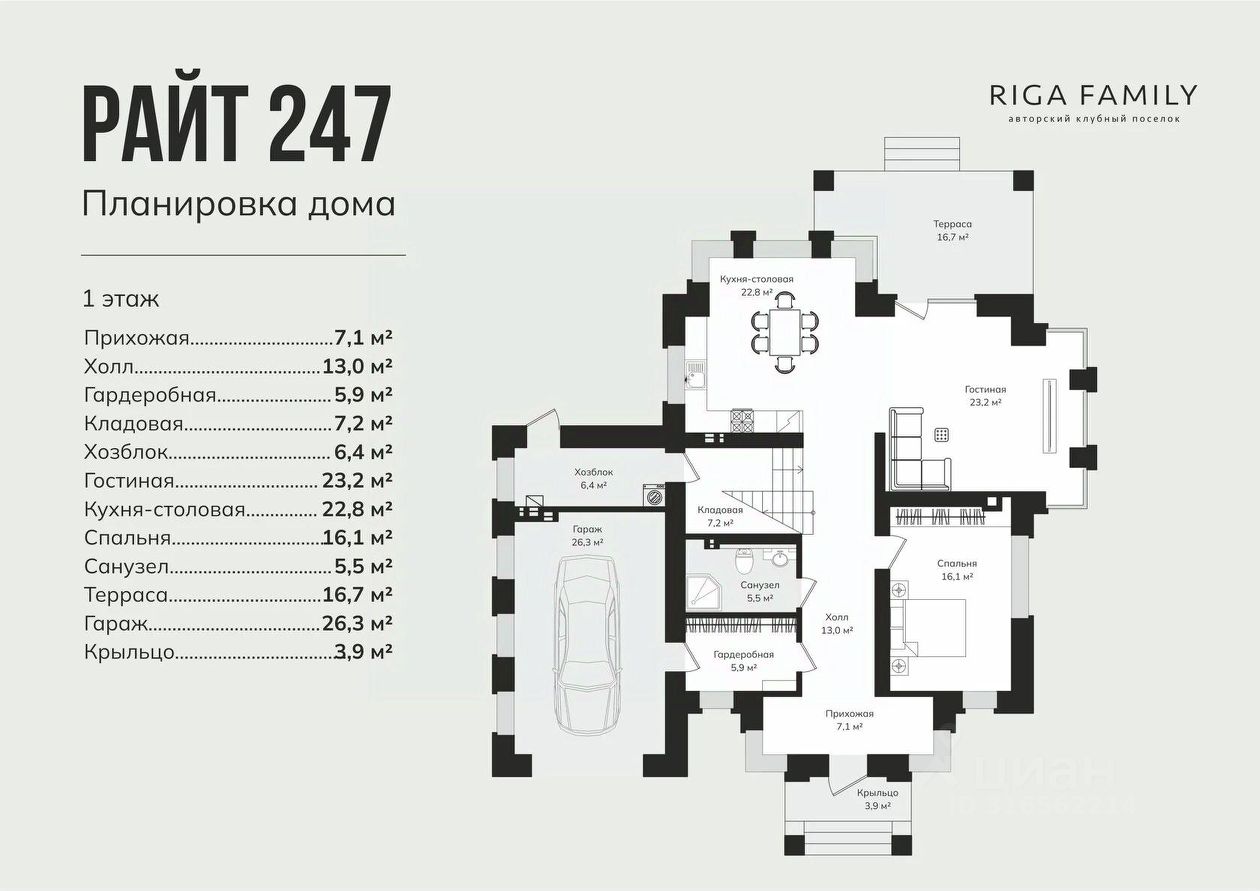 В объявлении указана стоимость дома 247м в черновой отделке на участке 202 размером 7,5 сот.