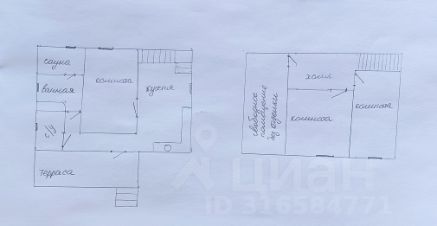 Планировка: на первом этаже — прихожая, вход с террасы, кухня-гостиная, комната, санузел, ванная комната и сауна.