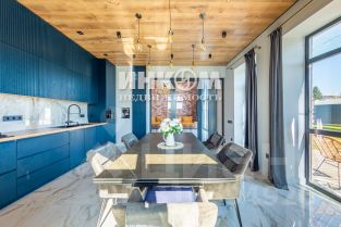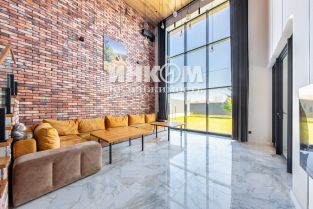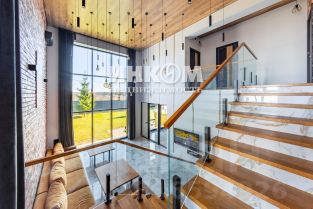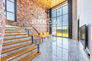 Зона притяжения в Доме - гостиная со вторым светом витражного типа. Интерьер дома выполнен в стиле Loft. Каждое жилое пространство с индивидуальными деталями. Дом предлагается в формате "заезжай и живи".