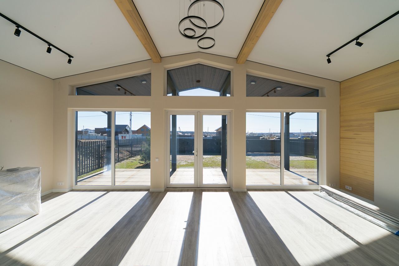 - Большие окна в пол,