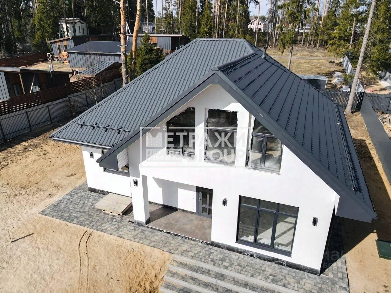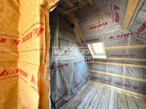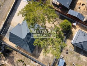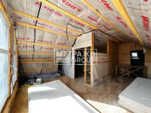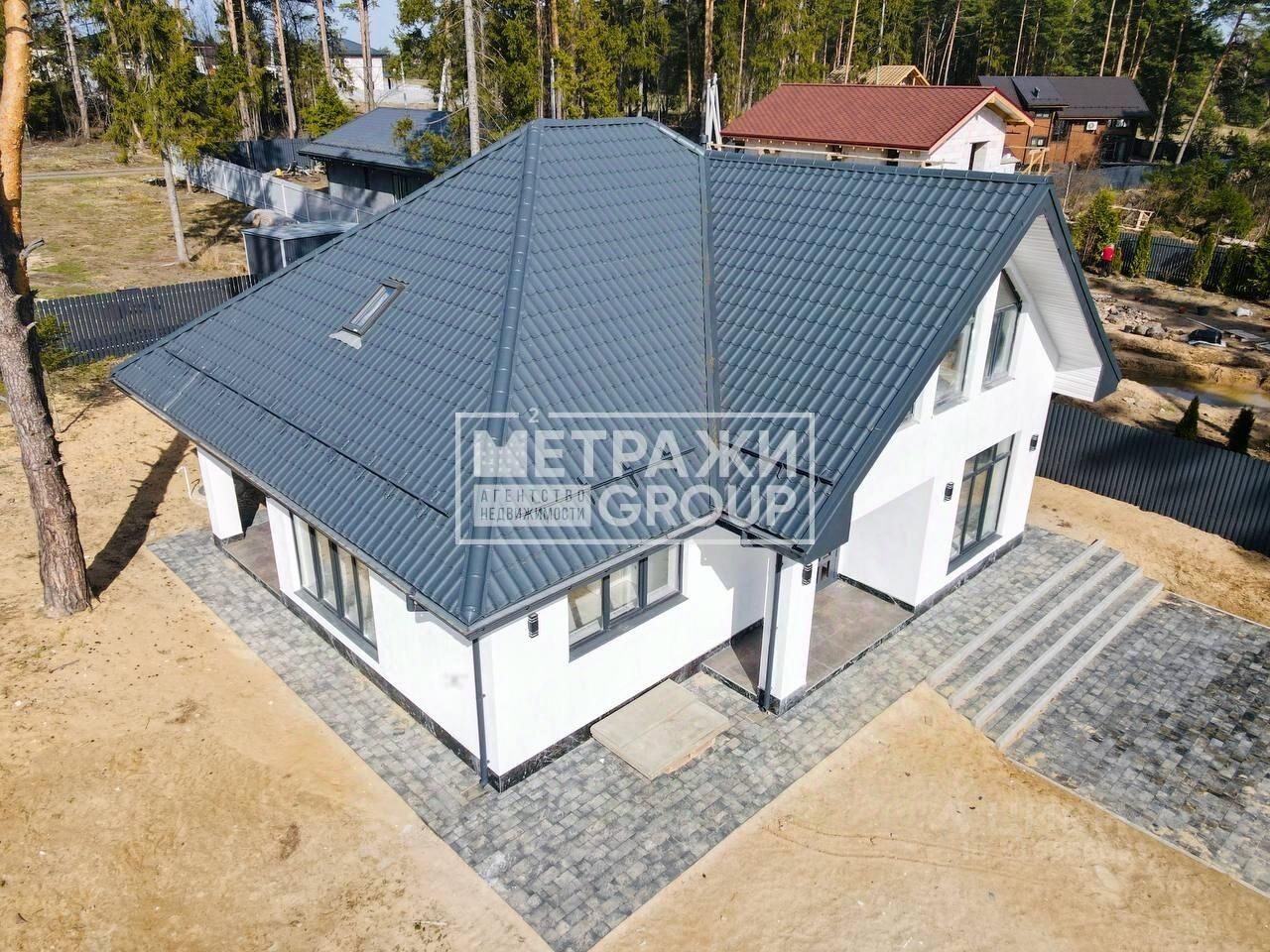 О доме: общая площадь составляет 161 кв.м. В доме расположены 4 спальни: 2 на первом этаже и 2 на втором, имеются гардеробы. Также предусмотрено 3 санузла (один на первом этаже и два на втором), кухня-гостиная и котельная. Участок правильной прямоугольной формы. Фундамент ленточный. Стены выполнены из газосиликатного блока (ширина наружной стены 40 см), имеется монолитный армопояс, усиленные балки, наружная теплоизоляция в три слоя. Крыша из металлочерепицы с мансардными окнами и утеплением Knauf, стеклопакеты двухкамерные Rehau, легкие деревянные утепленные перекрытия 200 мм. Полы также утеплены, толщина "подушки" составляет 50 см, использован фольгоизол, водяной подогрев и керамогранит. Стены оштукатурены гипсом и подготовлены под обои, подоконники пластиковые, котел электрический, перегородки - 250 мм, радиаторы. В доме установлены следующие коммуникации: биосептик Topaz 5 для канализации, водопровод с чистой водой из скважины, электричество 15 кВт с трехфазным подключением и стабилизаторами на каждой фазе. Отопление осуществляется электрическим котлом мощностью от 5 до 12 кВт. Для отделки второго этажа есть все необходимые материалы.