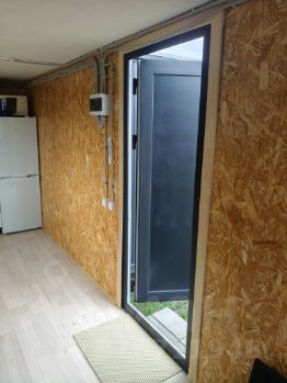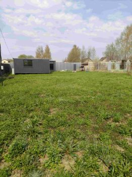 Участок правильной формы, ровный (дополнительно завозил грунт), есть скважина, уличный туалет, мангальная зона, комплекс из 3 домиков, по периметру есть забор с откатными воротами (широкий въезд 5м), есть возможность заехать на грузовом автомобиле, для доставки строительных материалов. Домики из металокаркаса, обшитые профнастилом и утеплены, установлены на винтовые сваи.