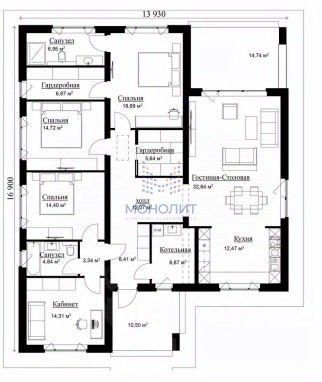 Кухня -12,47 Мастер - спальня - 18,89 м²