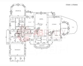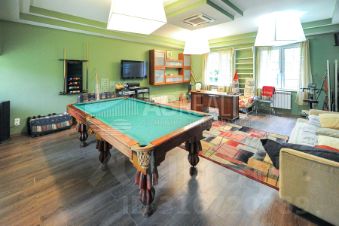 На 1 этаже гостиные комнаты с камином, столовая с выходом на веранду, кухня, 2 гостевые спальни, зимний сад, сауна, бильярдная, бойлерная.