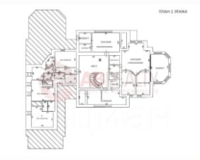 На 2 этаже просторный холл, 3 спальни со своими санузлами и гардеробными, кабинет, помещения под чистовую отделку с отдельной лестницей (возможно использовать для проживания персонала).