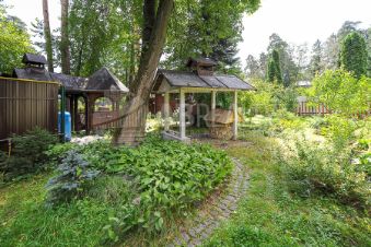 Участок ровный. Правильной формы. Газон, плодовые деревья и кустарники, вековые ели, цветники. Две теплицы 4х3м из алюминиевого профиля.