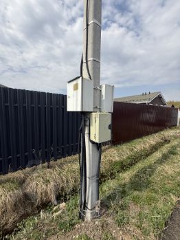 Электричество подведено и разведено по дому, установлен свой фонарь на столб для освещения двора. Установлено заземление дома.