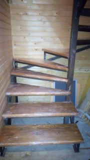 На второй этаж построена лестница на металлическом каркасе с деревянными ступенями. При подъёме встречает широкий холл с застеклённым светлым балконом и две просторные уютные спальни по10 кв. метров.