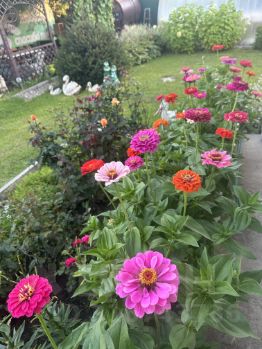 Нотку уюта создают клумбы с цветами, а также плодовые деревья и кустарники: малина, смородина, жимолость, черноплодная рябина, крыжовник.